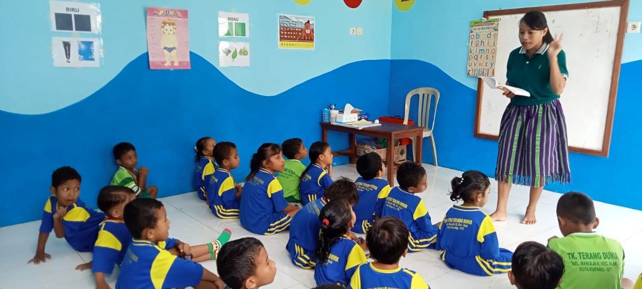 Kunjungan Pembina Yayasan Mitra Global Tunbes, Bapak Charles Oematan ke TK Mitra Terang Dunia